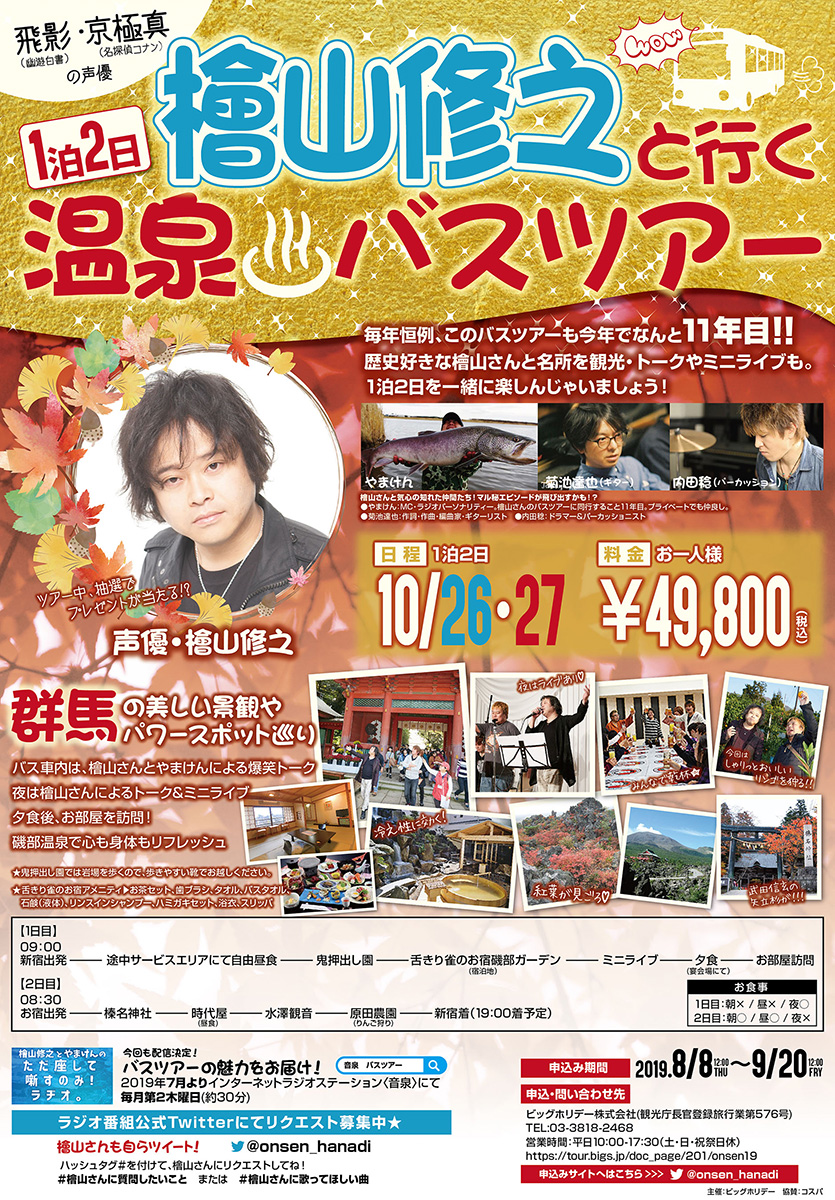 ●檜山修之と行く温泉バスツアー 申込サイト(ビックホリデー)