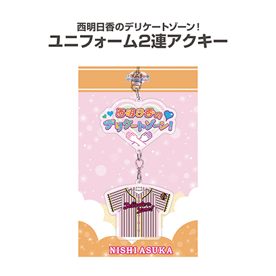 西明日香のデリケートゾーン!のロゴと幻のグッズデリケートゾーン!ユニフォームをかたどった2種のアクキーをセットに。
