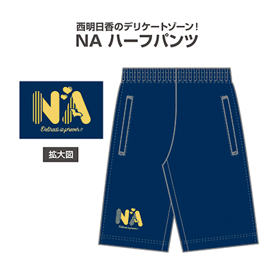 西明日香さんのイニシャルをほどこしたハーフパンツです。紺色のデザインで普段使いにも最適!