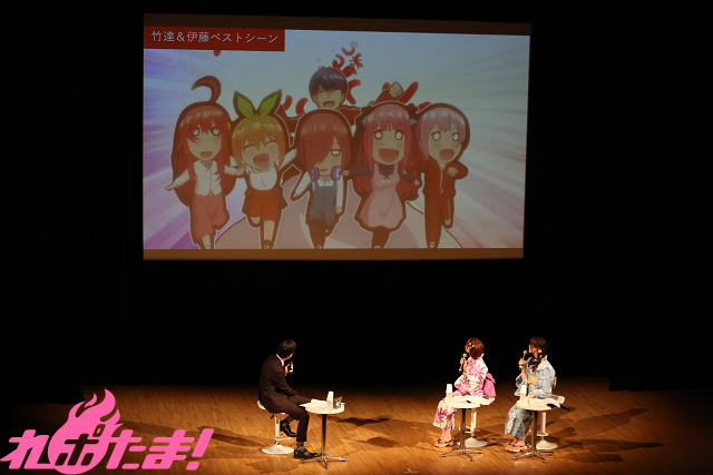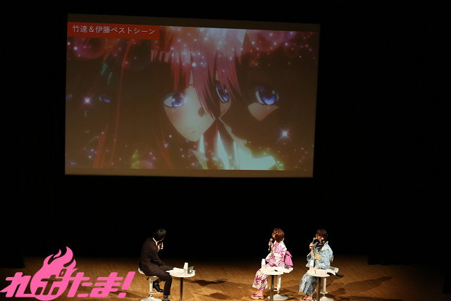 そして、ふたりが共通で選んだのは第12話の「風邪で寝込む風太郎の部屋に5人が見舞いに来るシーン」。「一本ずつ風太郎の指を握っているのがたまらないんです」(竹達さん)、「原作でも素晴らしかったのですが、アニメになってもすごくよかったです」(伊藤さん)と絶賛していた。