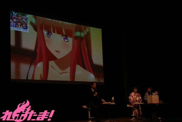 アフレコ現場の様子を聞かれると、竹達さんは「みんな自由にのびのびと話してましたが、(上杉風太郎役の)松岡禎丞さんだけ会話に中々入ってこれないみたいでした(笑)」と裏話を激白。