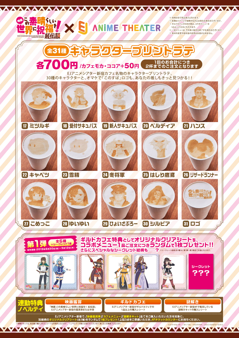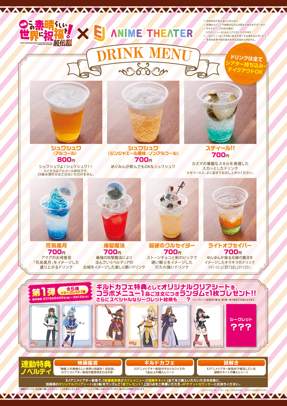 8月30日(金)から全国劇場にて公開となる「映画 この素晴らしい世界に祝福を! 紅伝説」。本作の公開を記念して、アニメ専門劇場・EJアニメシアター新宿5Fでは、作品世界を再現したギルドカフェ&ギャラリーの開催が決定!