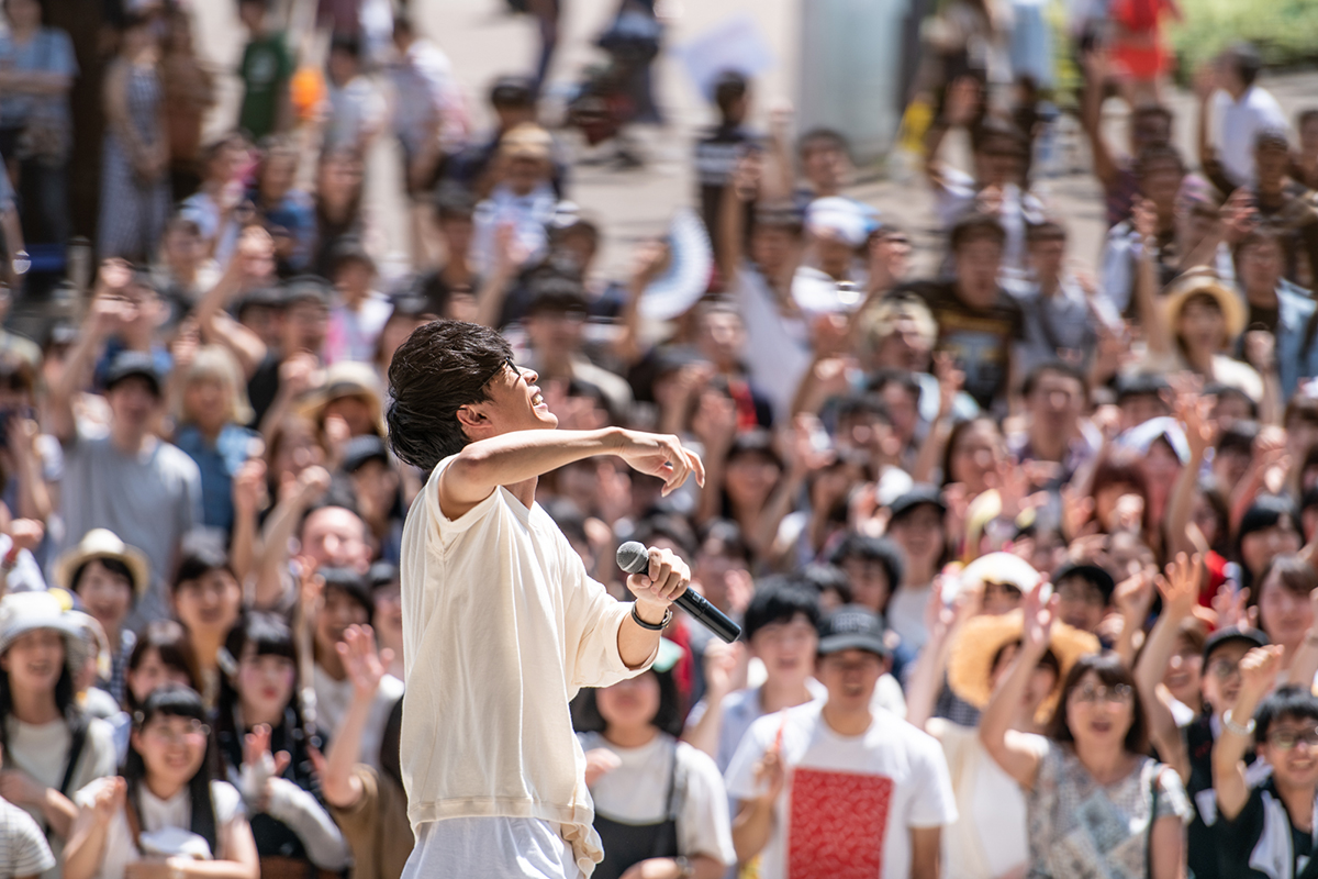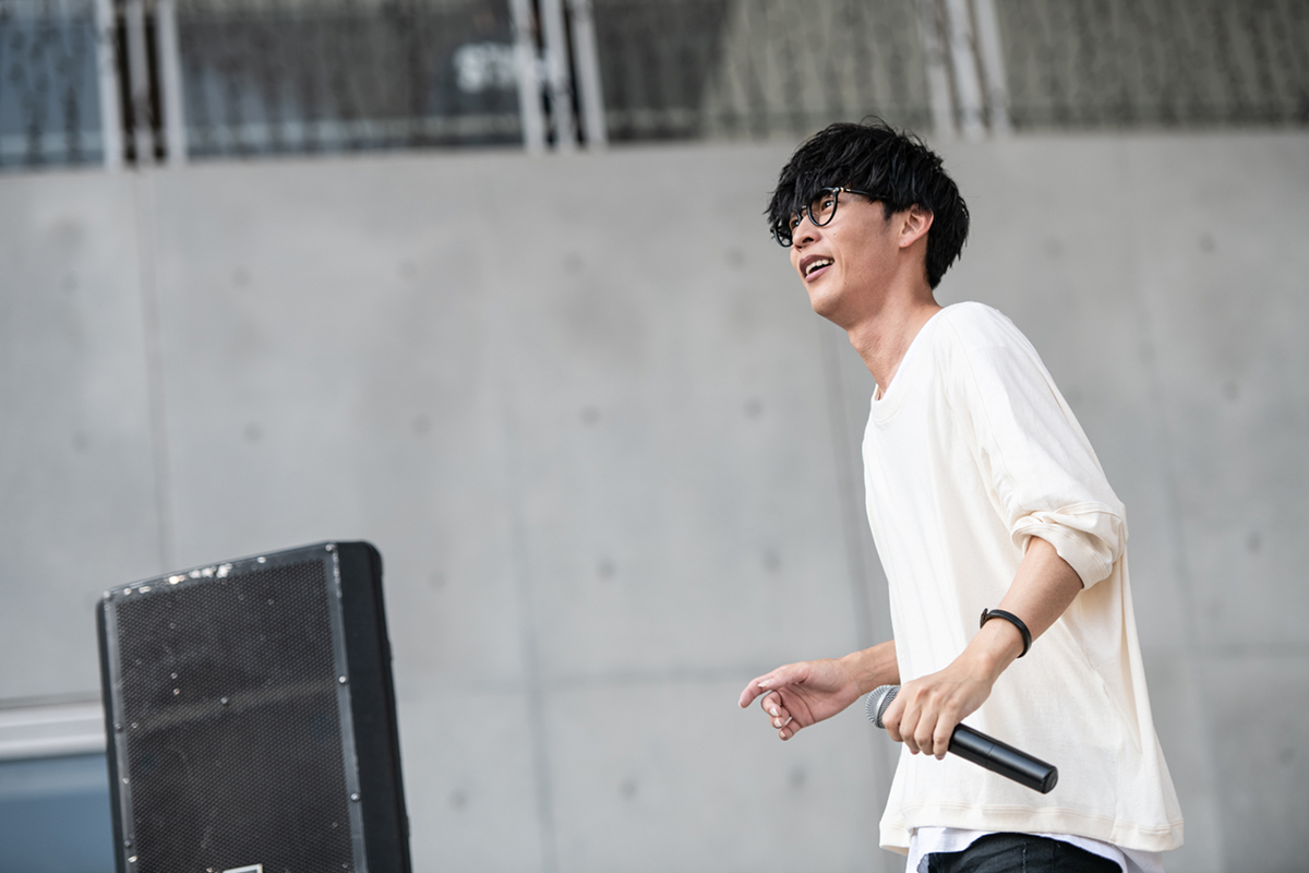 これにてライブ終了の予定だったが、観客からの“ええ〜”という声に後ろ髪を引かれたのか、「せっかく気持ちいい瞬間ですもんね。みんな体力的にまだ大丈夫?」と聞きつつ、急遽、セットリストにはなかった「ひとり咲き」(CHAGE and ASKA)をアコギ弾き語りで披露することに。彼が小さい頃から慣れ親しんだCHAGE and ASKAのASKA脱退のニュースについて触れ、「デビュー曲から大好きでした。完全に僕のわがままですがCHAGE and ASKAさんのデビュー曲を歌いたいと思います」。朴訥としたアルペジオを紡ぎ、ギター1本と声だけで叙情性豊かな世界を描く。蝉の鳴き声さえもまるで音楽の一部のように感じられ、道行く人も立ち止まってそのプリミティブな音に耳を傾けていた。