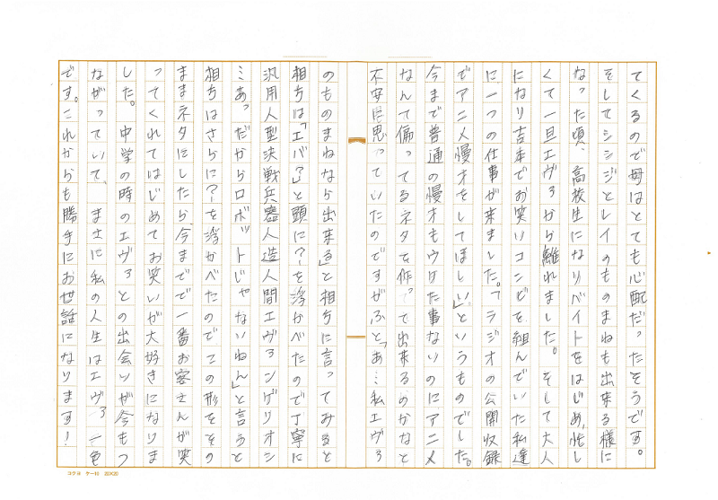 400字詰めの原稿用紙2枚以内に“直筆”で、あなたのエヴァ愛を綴ってください!