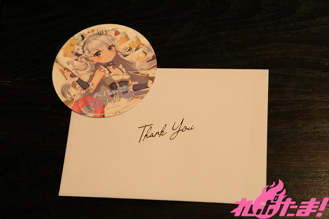 コラボメニューのご注文で税込み¥1,000ごとに、メイド隊(+1名)からベルちゃんへの日報メッセージを1枚プレゼント。