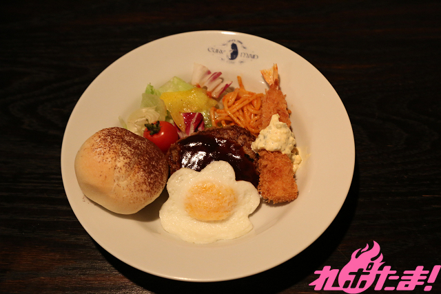 ナポリタンやエビフライ、自家製デミグラスソースのハンバーグの上にはお花型の目玉焼きをのせたボリュームたっぷりお子様ランチ。ベルちゃんも大好きなご飯です。