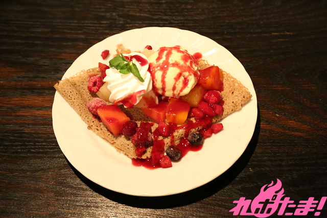 もちもちしたガレットの上にフルーツをたっぷりトッピング。