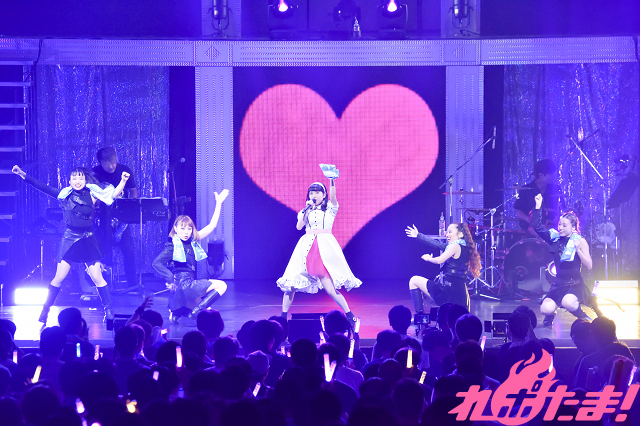 続いては「ツアー中に色々あった曲(笑)」という「さよならモラトリアム」。この曲では、曲間に「おとなチャレンジ」というコーナーが設けられ、歌詞にちなんで“20秒間で”何かに挑戦することが恒例となっている。この日は「ギターのOmmyさんと協力し、20秒間でギターで曲の1フレーズを弾く」という企画に挑戦し、見事に成功!