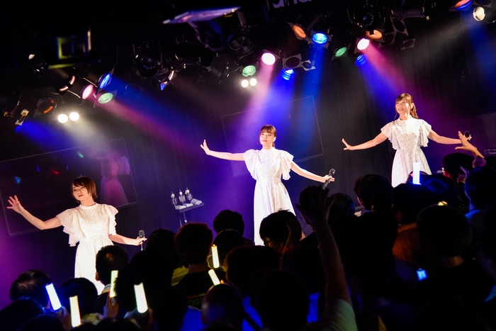 ライブは早くもクライマックス。ふたたび3人でステージに立つと、「引き出せ!ポテンシャル」、新曲の「ていく・あ・ぶれいく♪」と続け、アンコールへとなだれ込む。