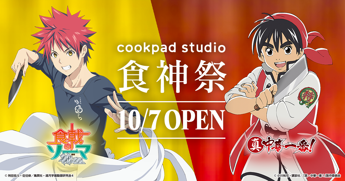 cookpad studioがプロデュースした「真・中華一番!」コラボメニュー、そして森崎友紀監修の「食戟のソーマ 神ノ皿」コラボメニューを提供する特別企画「cookpad studio 食神祭」が10月7日(月)から開催!