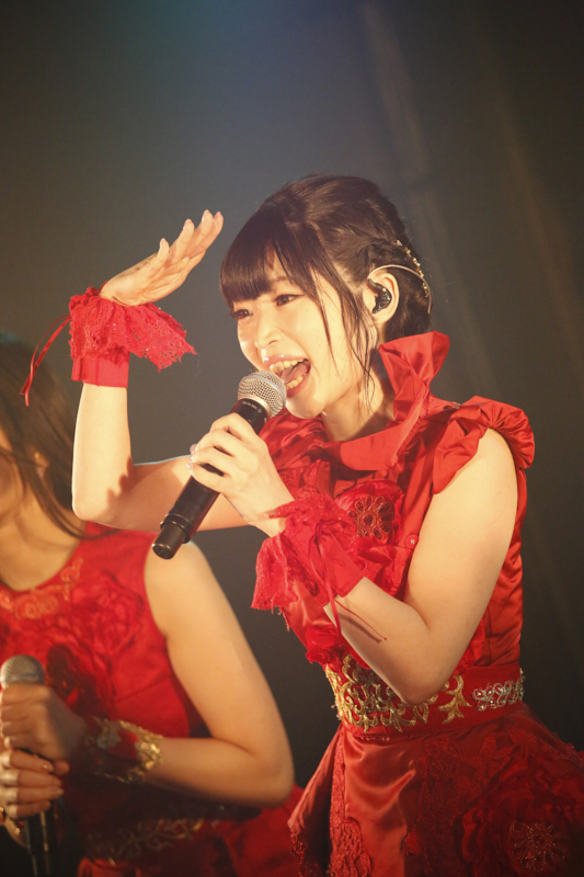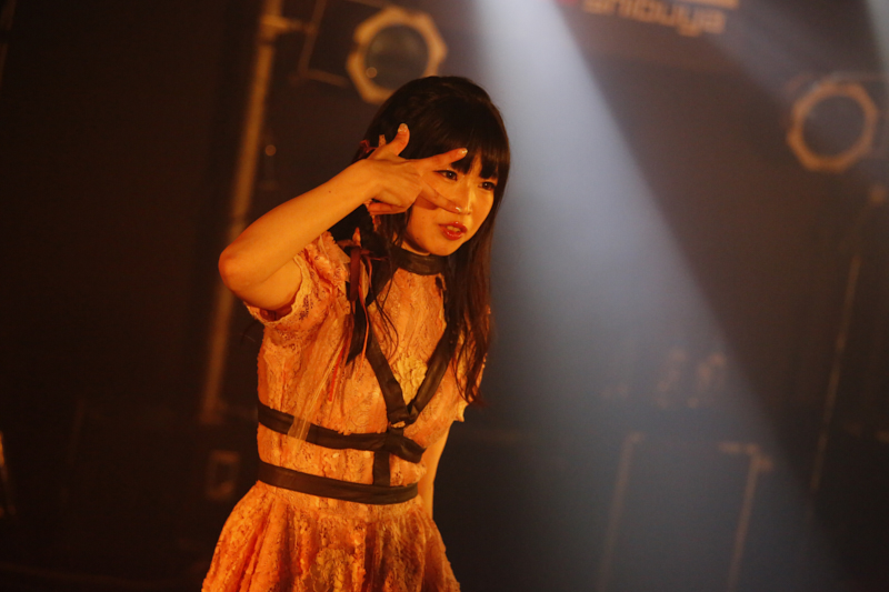 そこから、2曲続けてオリジナル曲を披露。TVアニメ『citrus』エンディングテーマ「Dear Teardrop」は、純愛を描いた少し切ない歌が癖になるポップサウンドと絶妙にマッチしている。どこかノスタルジックな雰囲気の漂う曲調から、ゴシックテイストの「My Sweet Maiden」(TVアニメ『sin 七つの大罪』オープニングテーマ)で空気を一転させると、「楽しんでますか!」「もっともっといけるよね!」と煽っていく。ファンもそれに応えるように拳を高く突き上げ、会場の一体感は増す一方だ。
