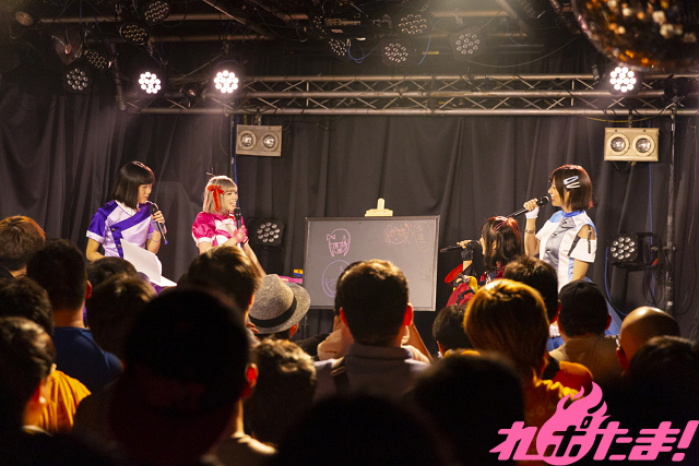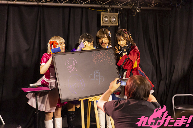 ステージ中央に用意された黒板に似顔絵をイタズラ描きする不良生徒(?)の南さんと八巻さんにMachicoさんと熊田さんがツッコミを入れつつ、黒板を前に写真撮影が行なわれるなど、フリーダムな授業が展開された。