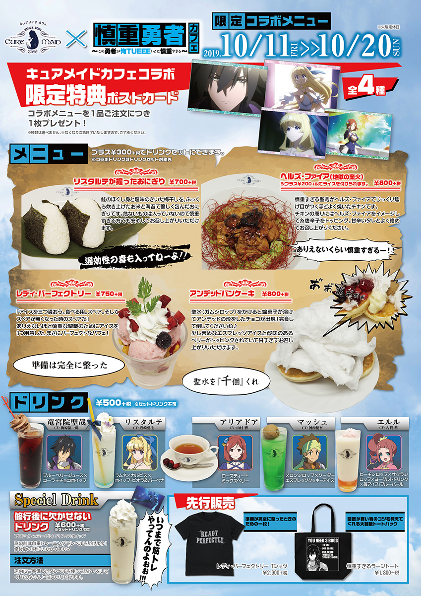 絶賛放送&配信中のアニメ『慎重勇者~この勇者が俺TUEEEくせに慎重すぎる~』のコラボカフェが、2019年10月11日(金)より秋葉原のキュアメイドカフェにて開催決定!