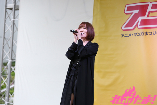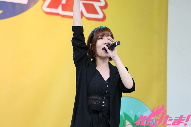 黒いスタイリッシュな衣装で登場したakiさんはアニメ『クリオネの灯り』OPテーマ「クリオネの灯り」を伸びのある声で歌唱すると、11月20日リリース予定の映画『東京ワイン会ピープル』の主題歌「ビロードの記憶」をリリース前一足先に、しっとりと歌い上げた。早くもラストの曲。最後は「一緒に盛り上がっていきましょう!」とオーディエンスを巻き込み、ゲーム『新次元ゲイム ネプテューヌⅦ』OPテーマ「StartingDays!!」を元気に歌い、ステージを締めた。