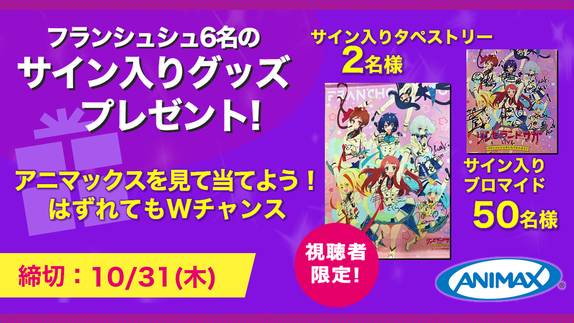 ☆アニマックスを見て当てよう!“フランシュシュ”6名のサイン入りグッズプレゼント
