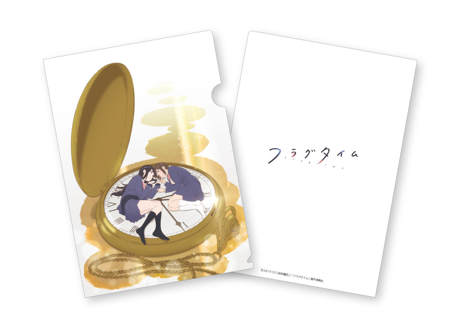 懐中時計の上で、ふたりだけの特別な時間を過ごす森谷と村上が描かれた描き下ろしイラストと、本編のオープニングアートを使用したクリアファイル2種セット。