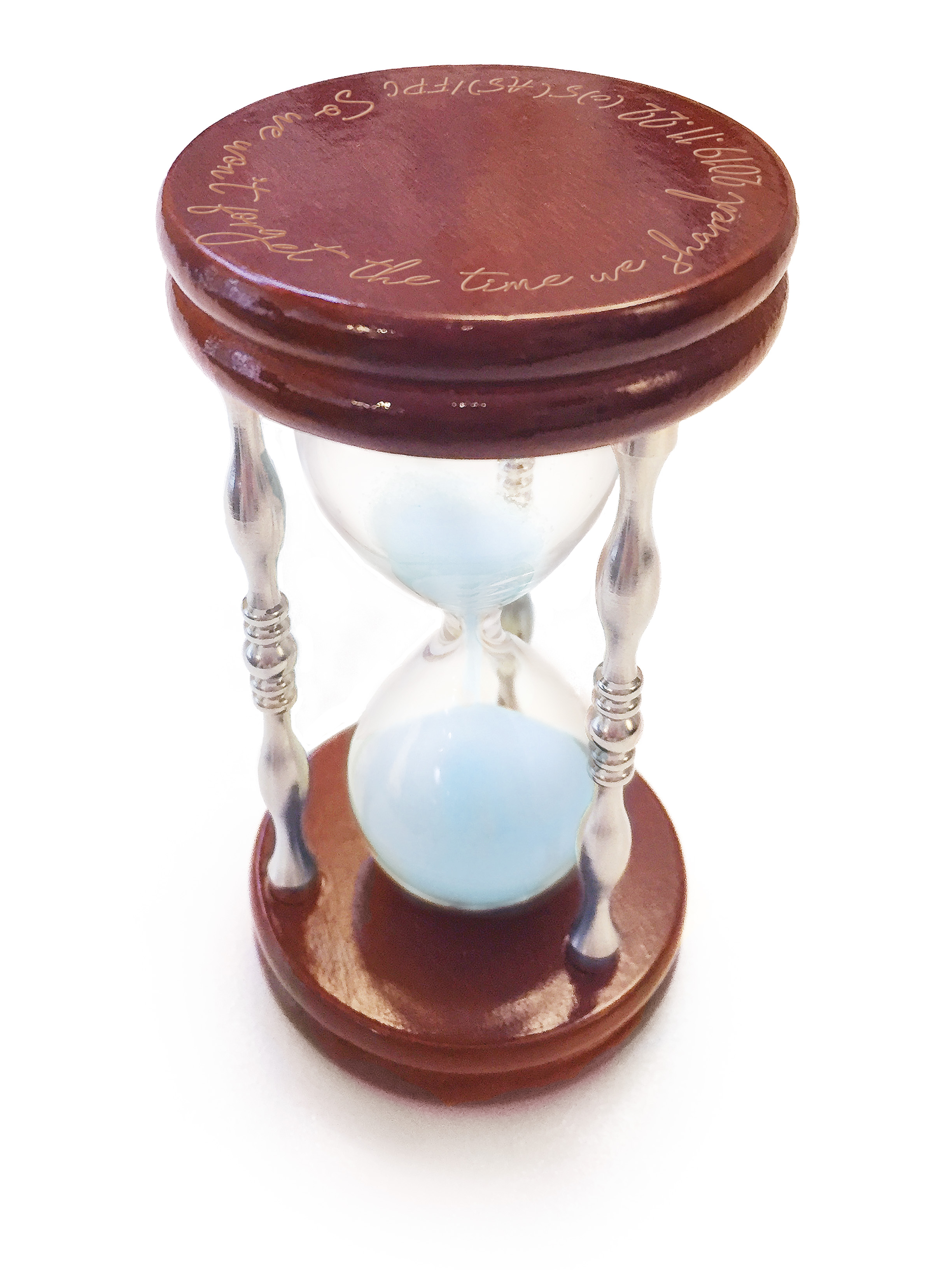 砂時計専門店「Sablier de Verrier」完全監修の作品オリジナル砂時計。2種類の砂を組み合わせた淡い水色の砂は「フラグタイム」の世界観を表現。優しくシックな色合いの天板には作中にも登場するセリフが掘られている。