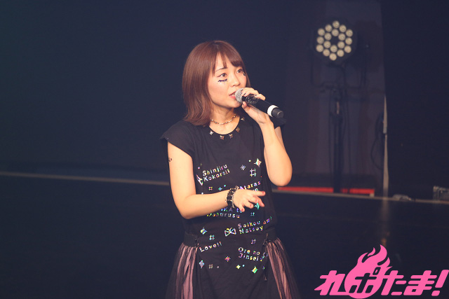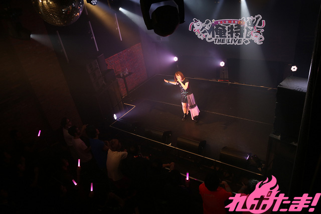 ライブはハロウィン当日に開催され、会場がハロウィンパーティーでにぎわう渋谷からほど近いということで「リア充の人を避けながら会場に来ました(笑)」と話した彼女。目元に黒い星と涙を模したシールを貼り、「『俺特!THE LIVE』は自分の庭」と言わんばかりのステージングを展開!