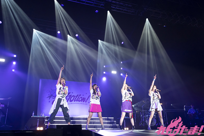 ミラーボールが輝くなか、まずは5月に発売された10th Anniversary Album『10s』のリード曲「Music Power→!!!!」を歌唱。寿さんの「幕張、盛り上がっていくぞ!」という叫びとともに「Miracle Shooter」を熱唱すると、花道を進みセンターのステージで「My Sweet Words」と力強く披露していく。「一緒に歌いましょう」と「CITRUS*FLAG」を歌唱し、最初のMCへ。