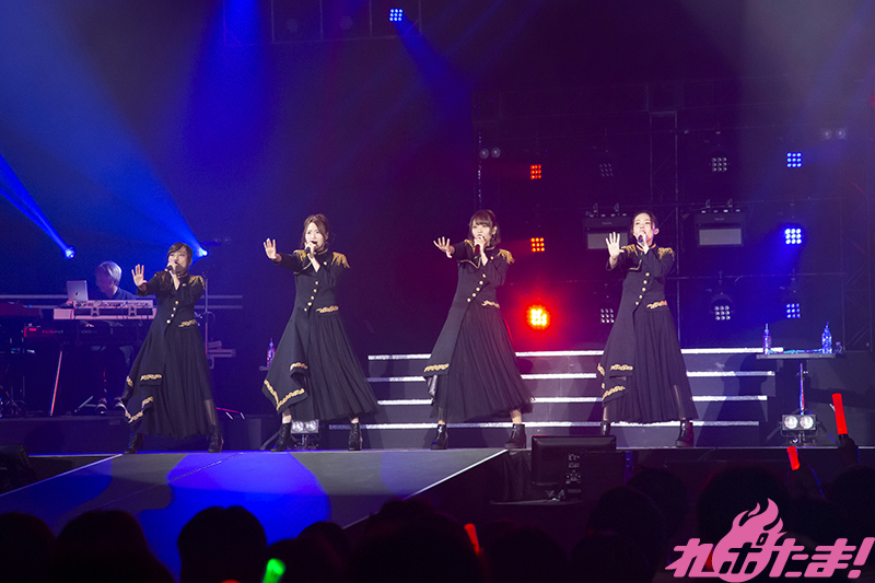 豊崎さんと高垣さんのソロ曲を挟み、黒を基調とした衣装でふたたび登場した4人が「