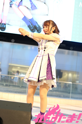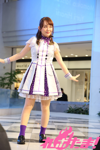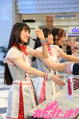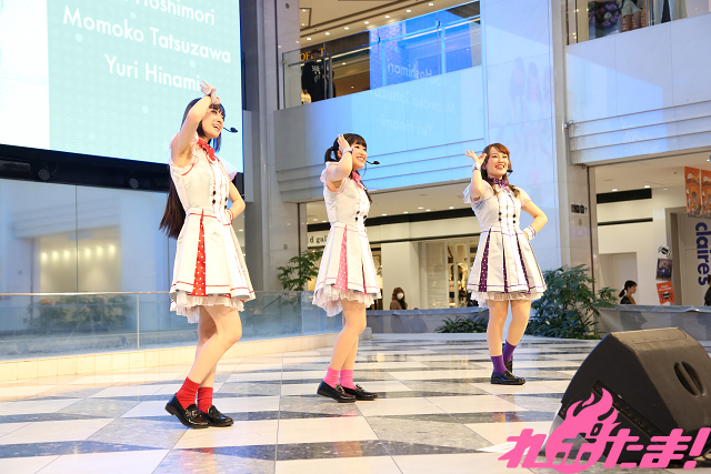 続いてはカップリングの「ときめく風が吹いたら」。上に向けて指を突き上げる振り付けがあるのだが、噴水広場は吹き抜け状になっているステージということで、「とても映えます!」とうれしそうな3人。