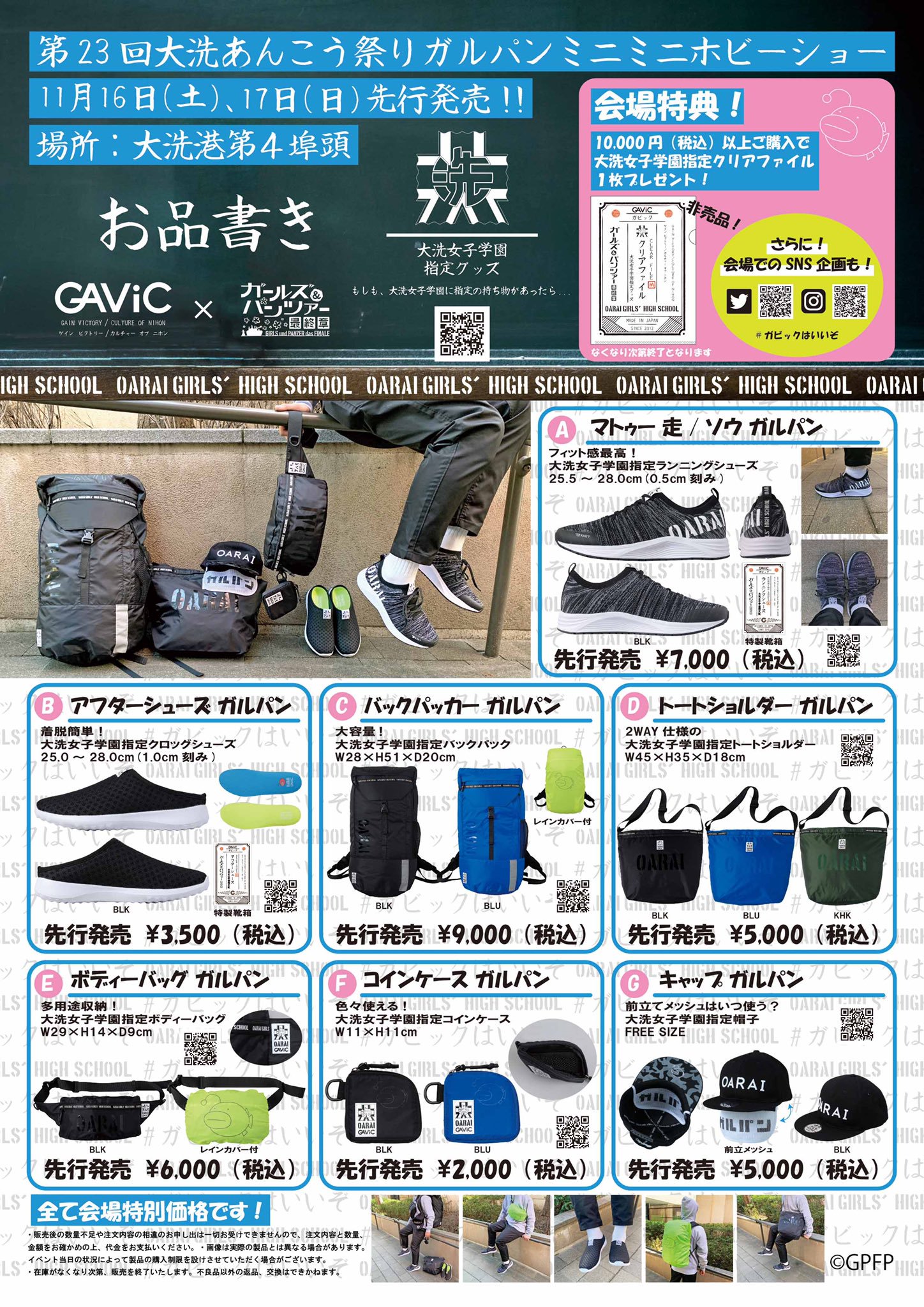 2019年11月16日(土),17日(日)茨城県大洗町にて開催される、「あんこう祭り ガルパンミニミニホビーショー」にて先行販売いたします。会場では、特典企画も実施予定です。 「ガビック×ガルパン」のコラボ情報は、ブランドサイト内特設ページおよび、ブランド公式Twitter,Instagramにて随時更新中です。