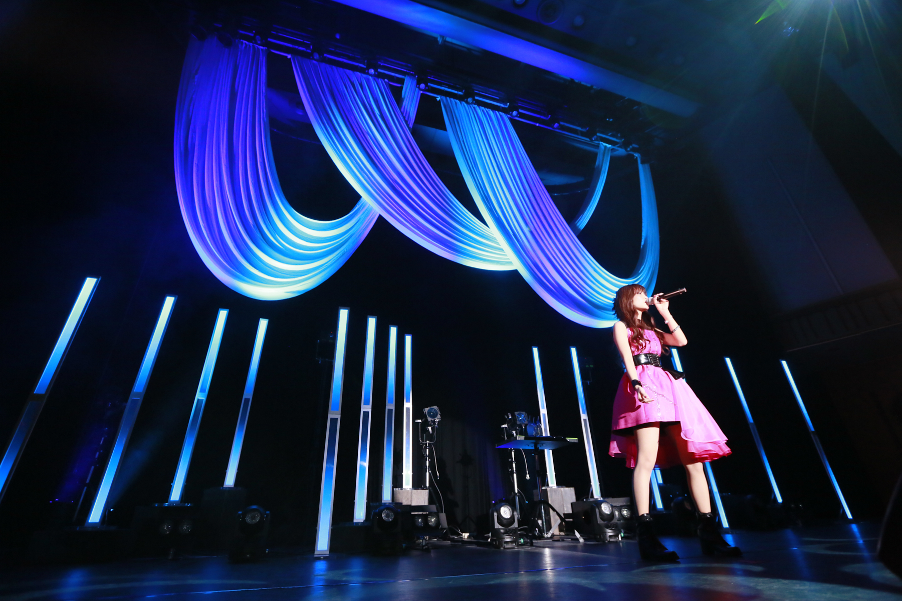 今回のLiveの第1部は、ピンクのミニドレス衣装で登場し、自身が作詞した「TUNE UP」でスタート。MCでファンと一緒に乾杯!をしつつ、新旧織り交ぜた楽曲はもちろん、完全新曲「JUST SIZE LIFE」も披露。事前にリクエストを募ったカバー曲コーナーも大いに盛り上がり、中盤では客席フロアに降りて歌唱するサプライズも。
