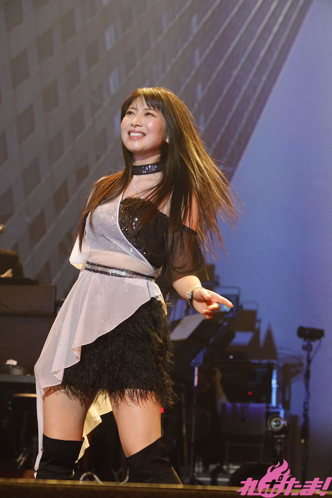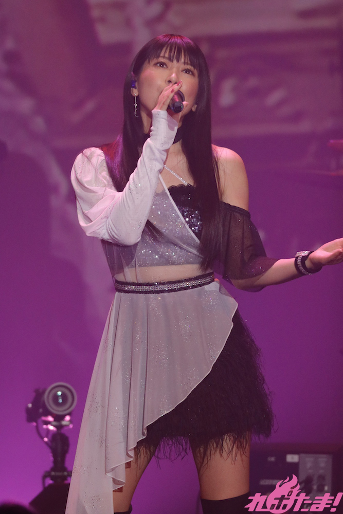「今日は楽しんでいきましょう!」と「Tomorrow’s chance」を繰り出すと「PRECIOUS ONE」「優しい忘却」としっとりと歌唱し、今回のライブのタイトルに歌詞がフィーチャーされている「Freedom Dreamer」で大盛り上がり!