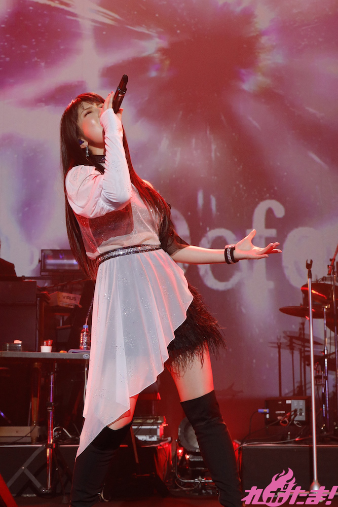 ライブは早くも折り返し。ここからは「Celestial Diva」、「ZONE//ALONE」と歌い上げ、さらに加速していく。「SELF PRODUCER」ではアグレッシブかつキュートな振り付けで客席を魅了した。そしてスタンドマイクに持ち替えて「向かい風に打たれながら」を歌い上げると、作品のタイアップがついたナンバーについて語るみのりん。「作品に寄り添って曲を作ることにより、そのパワーが増しました」と笑顔。誕生日を迎えて限界に挑戦するのもいいね!」と言い放ち、ラストスパート!