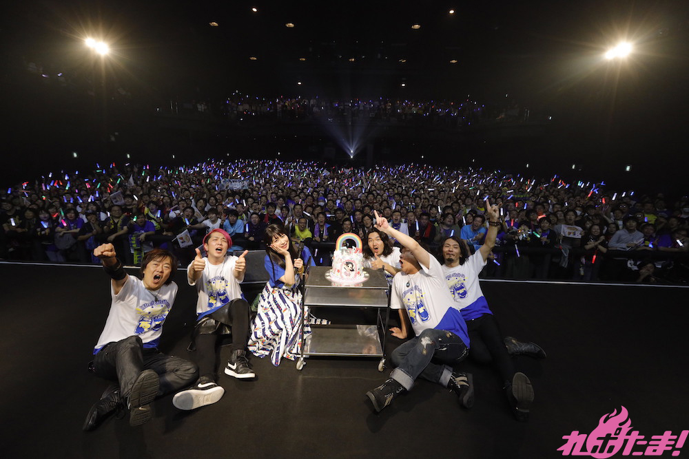 さらに「『ありがとう』の想いを込めて、みんなにプレゼントがあります!」と語るみのりん。しかし、ここでバースデーサプライズとしてケーキが登場! 「ライブの前にさんざんお祝いしてもらったから、もうないと思ってました……」と驚いた様子だったが、客席バックで笑顔で記念撮影をしていた。