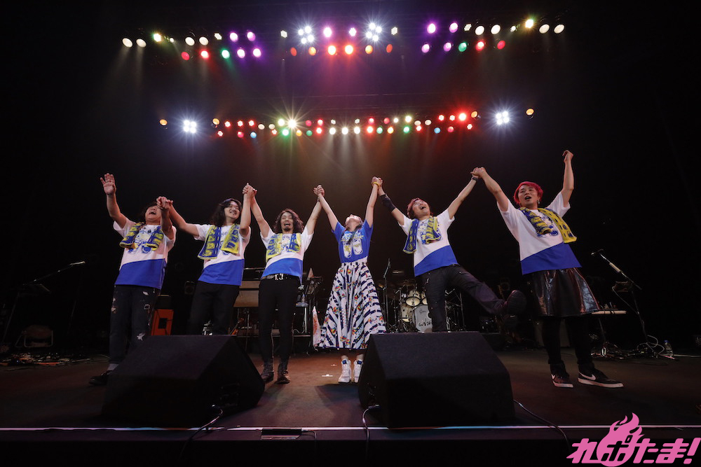 アンコールは元祖フラッグ曲「Lush march!!」からスタート。マイブームである「薄めのハイボール」をイメージした新作フラッグをかざしながら披露すると、CMBのメンバー紹介。「体力ギリギリ」「10年以上サポートメンバーをやっているけど、今日ほどのものはないです」とボリューミーなセットリストにアップアップの声も(笑)。