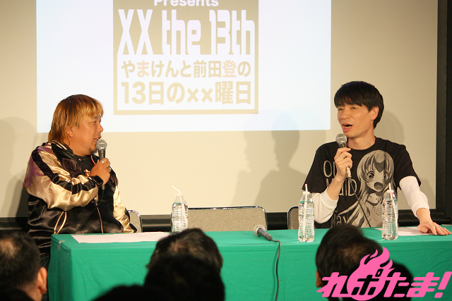 株式会社TRYALL社長でインターネットラジオステーション<音泉>創業者のやまけんさんと、アニメ大好き芸人として有名なよしもとのお笑いコンビ「はりけ~んず」のボケ担当・前田登さんが、女性声優やアニソン歌手といったゲストと一緒に盛り上がりまくる爆笑必至のアニメ・声優トークイベント『13日の××曜日』。毎月13日(たまに別日)に東京・秋葉原のジーストア・アキバ5Fの「13式催事空間」で開催されるこのイベントが、先月の11月13日に開催された。