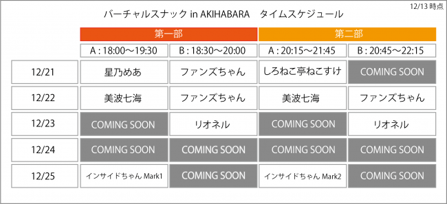 ■バーチャルスナック in AKIHABARA 開店スケジュール