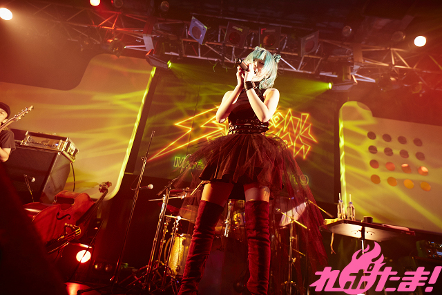 超満員にふくれあがったファンを前に、緑色の髪に黒を基調とした衣装で登場したMachicoは「STAND UP!」を挨拶代わりに披露すると、「Million Smile」では目のあたりでピースサインを作り、バッチリキメる。「楽しく、かわいく、カッコよく、アツいライブにします!」と宣言し、人差し指を突き上げながら「コレカラ」、オーディエンスが一糸乱れぬクラップを披露した「fantastic dreamer」と投下していく。