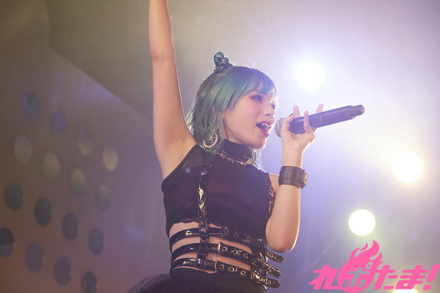 ライブは早くも後半戦。バンドメンバーの紹介後、「ラストはロックな曲で攻めます、最後までついてきてね!」と客席をあおり、拳を突き上げながら「ワイルドカード」、さらに「Soul Believer」と繰り出し「Zeal」ではオーディエンスから「WOW」の大合唱も。