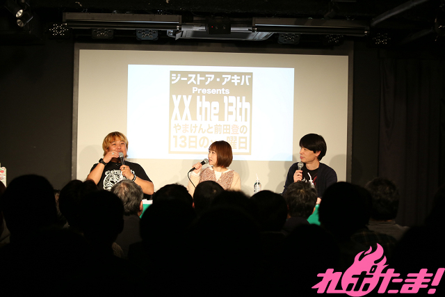 株式会社TRYALL社長でインターネットラジオステーション<音泉>創業者のやまけんさんと、アニメ大好き芸人として有名なよしもとのお笑いコンビ「はりけ~んず」のボケ担当・前田登さんが、女性声優やアニソン歌手といったゲストと一緒に盛り上がりまくる爆笑必至のアニメ・声優トークイベント『13日の××曜日』。毎月13日(たまに別日)に東京・秋葉原のジーストア・アキバ5Fの「13式催事空間」で開催されるこのイベントが、12月13日、年末レギュラーとして定着した巽悠衣子さんを迎えて行なわれた。