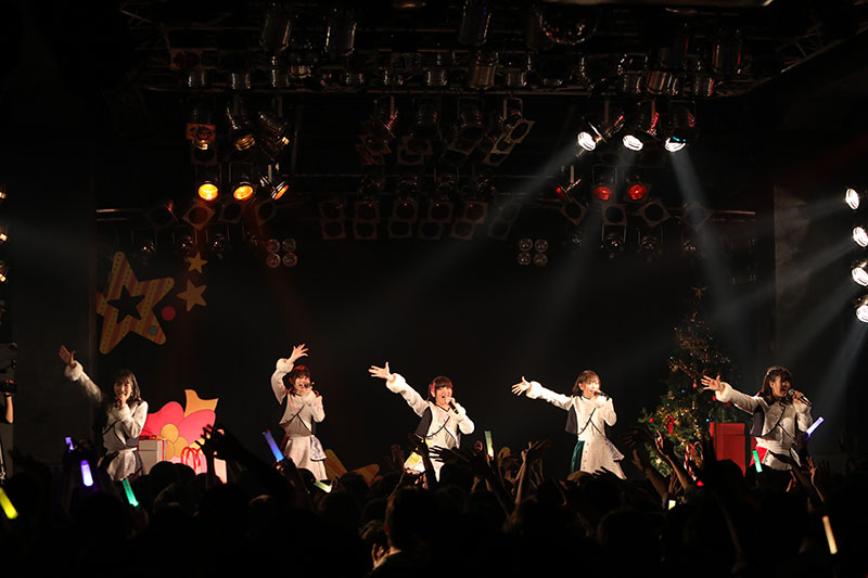 冬にぴったりの白を基調とした新衣装で登場した5人は、「Never give upをもう一度」で会場のテンションを一気に上げる。力強さが増した熱い歌声と息の合ったダンスパフォーマンスに、ドリオンズたちも腕を掲げて大興奮だ。続く「ブランコリック」は美しいメロディとハーモニーがクリスマスにもマッチし、この時期に聴くからこその趣も感じさせた。