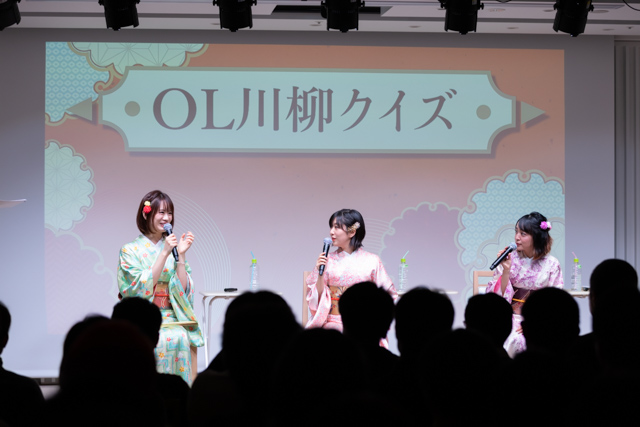 続いてのゲームコーナーでは、毎年開催されている『シティOL川柳』の句から5・7・5の最初の1句・2句を聞いて、最後の3句を当てていくというもの。1問目は『そっと乗り 叫んで降りた 〇〇〇〇〇』 。「ジェットコースター」、「清水寺」、「スケボー」と色々な回答が出るなか、茅野さんが「体重計」と回答し見事正解。正解を聞いた瀬戸さんと潘さんは「わかる!」と大きく頷いていました。2問目は『スカートイン ぽっかりお腹が 〇〇〇〇〇』。「よう目立つ」、「のっかるね」、などの回答がでるも不正解。