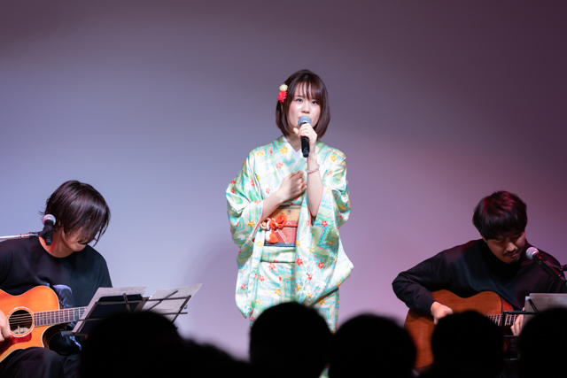 続いて、堀内孝平さん、孝太さんによるアコースティックライブのコーナーでは 第1期、第2期のオープニングテーマ『YOUTHFUL』『STAR』の2曲を続けて披露。会場のお客さんも手拍子で会場を盛り上げました。さらにサプライズで瀬戸さんのボーカルで第1期のエンディングテーマ『そしていま』を披露すると、会場は静まり瀬戸さんの美しい歌声と伸びのある高音に酔いしれました。ライブコーナーの最後には茅野さん、潘さんも加わり会場のお客さんとともに全員で第3期のオープニングテーマ『COLORFUL』を歌いあげました。
