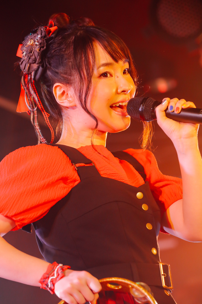 28日には地元・長野にてソロ公演、そして前日29日には渋谷CLUB QUATTROで開催されたnano.RIPEのライブにゲスト出演ということで、彼女にとってはライブ続きの3日間となっていたこの日。その疲れを感じさせずに「ユメ・ミル・ココロ」でライブの幕を開けると、TVアニメ『しゅごキャラ!』日奈森あむのキャラクターソングをリアレンジした「君のBirthday(Rearrange Ver.)」、さらにちょっぴり切ない歌声が胸を打つ「メタメリズム」と続けざまに披露していった。