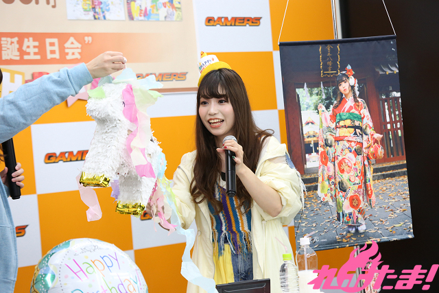 最後は10月6日に開催されたバースデーライブ「亜咲花 20th Birthday Live ~EVE~」でも挑戦した「ピニャータ割り」! 前回はうまく割れずに、バンドメンバーに助けられてしまい、今回はリベンジをかけての挑戦だったが、残念ながらまたもうまく割れず……(笑)。