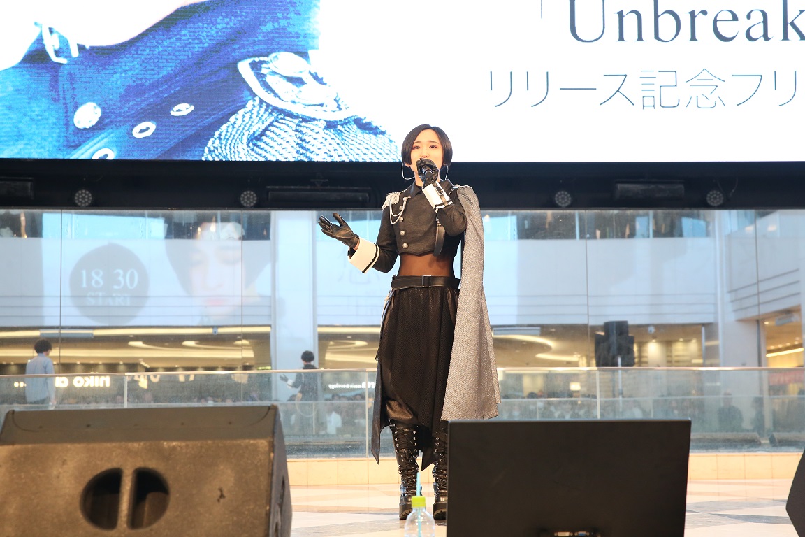 シングル表題曲でTVアニメ「インフィニット・デンドログラム」オープニングテーマの「Unbreakable」、カップリングの「Break down」の2曲を披露した。