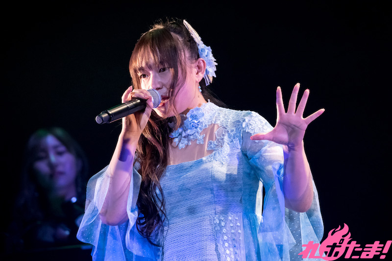 バンドメンバー紹介とグッズの紹介を終えると、改めてゲストの沼倉さんへの感謝の気持ちを伝え、さらに今回のライブはオフィシャルファンクラブ「+Amembers」主催ということで、いつも彼女のことを支えてくれているファンに向けても最大限の感謝の言葉を述べていた。