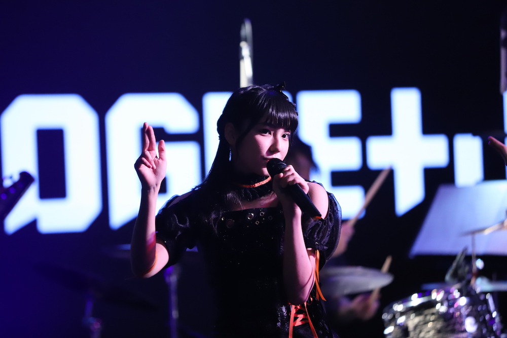 昼夜両部ともソールドアウトとなり、ファンで埋め尽くされた会場が暗転後スクリーンにキャスト紹介が映し出され、バンドによるインスト演奏がスタートする。なんとそこに居たのはDIALOGUE+で楽器経験のあるメンバーたちで、ドラム・エレクトーン・エレキギター・ベースを見事に操ってみせた。バンドメンバーと入れ替わり、デビューシングルのカップリング曲「ダイアローグ+インビテーション!」が流れると、ファンも待ってましたと言わんばかりに熱が入る。この日はDIALOGUE+の面々は新衣装で登場し、デビュー時のフレッシュなイメージから一転、黒のドレスを基調にメンバーカラーをアクセントに添えた大人びた姿に。その出で立ちに歓声で迎え入れたファンに向けて1曲目を届け終わると、全員が挨拶を行なった後にこのイベントの趣旨を簡単に説明する。