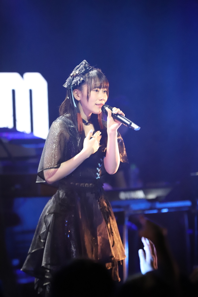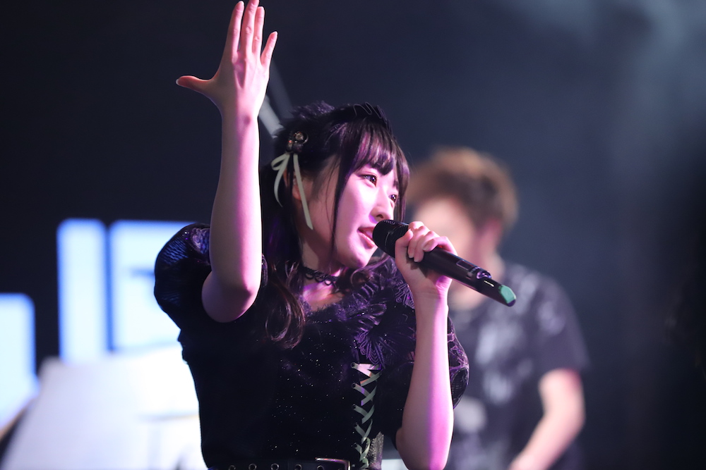 そしてトークもそこそこに、いきなりライブはフルスロットル態勢に入り、メンバー・ユニットが次々と入れ替わり立ちかわりで、TVアニメなどの人気楽曲を歌唱していく。それもただのカバーではなく、アニソンライブでも活躍するバンドメンバーの生演奏によってさらなる迫力を得たステージは圧巻の一言。楽曲のレパートリーも豊富で、「徒花ネクロマンシー」や「お願いマッスル」などアニメファンにはお馴染みで盛り上がる楽曲から、三森すずこのアルバム収録曲「星屑のカーテン」といった大人びた雰囲気のものまで、原曲へのリスペクトがこもった歌声を途切れなく届け、ファンにも休む暇を全く与えない構成となった。