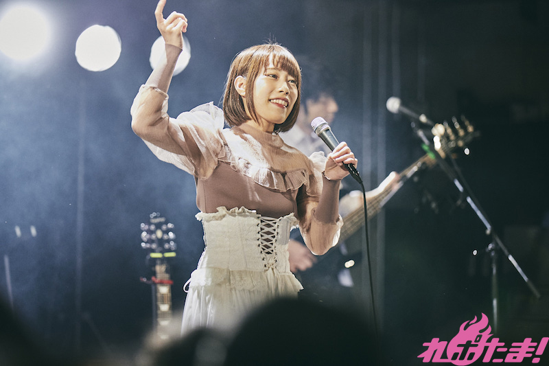 今春から第二期が放送開始予定の『邪神ちゃんドロップキック』挿入歌「ミライドライブ」では、客席の鮮やかな黄色いサイリウムに照らされ、そして「tell you, tell me」をセクシーな歌声で歌唱。そして「酩酊」ではスタンドマイクに持ち替え、青い光に包まれて「Good bye,Liar」を歌い上げた。