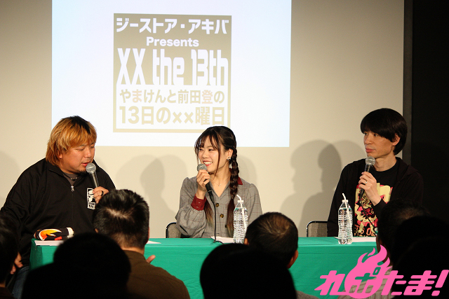 毎月13日(たまに別日)に東京・秋葉原のジーストア・アキバ5Fにある「13式催事空間」で開催されるトークイベント『13日の××曜日』。株式会社TRYALL社長&インターネットラジオステーション<音泉>創業者のやまけんさんと、よしもとのお笑いコンビ「はりけ~んず」のボケ担当でアニメ大好き芸人の前田登さんが、女性声優やアニソン歌手たちと一緒に120分間ノンストップで盛り上がりまくる! 今回は2020年を迎えて最初の開催となった1月13日のイベントの模様をお届け!