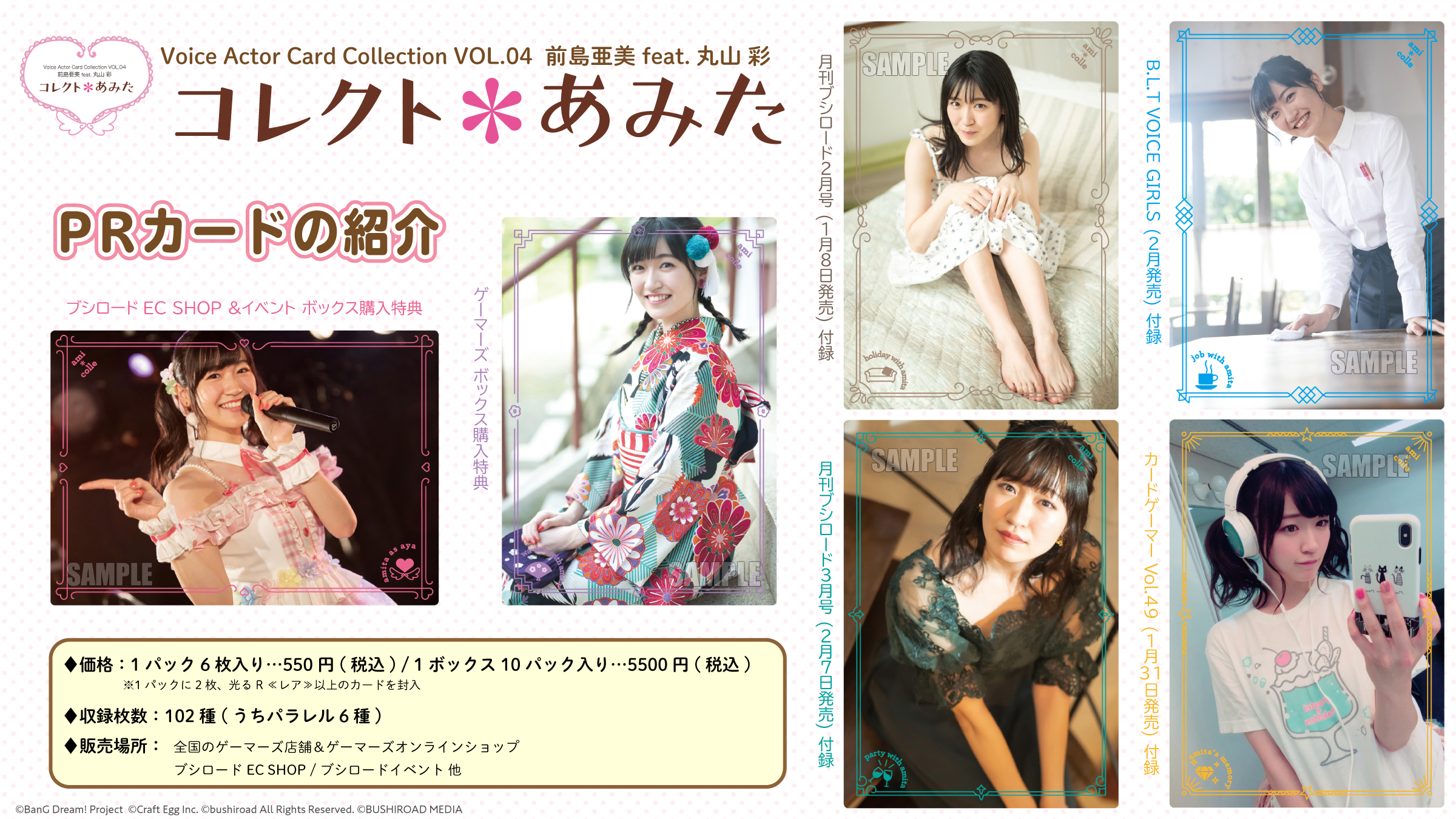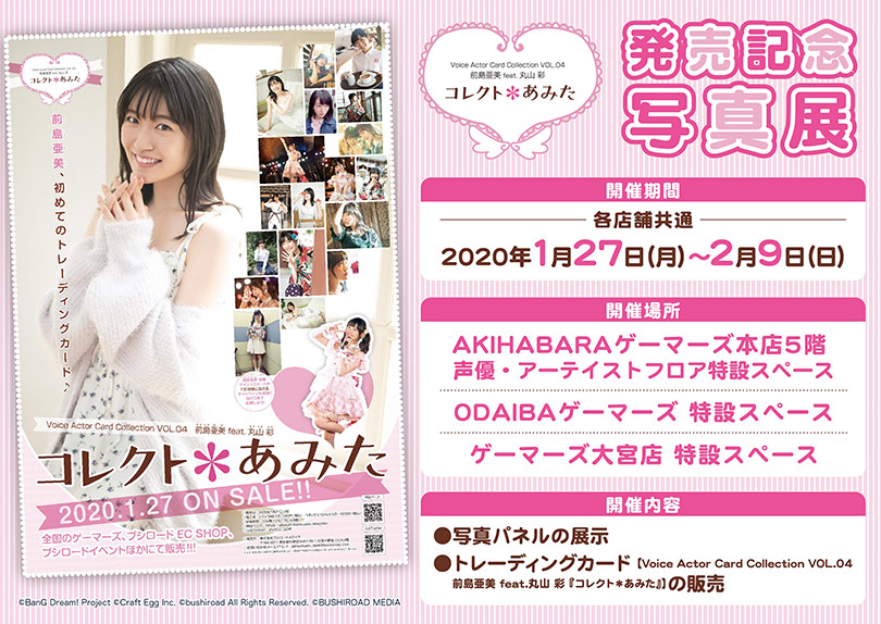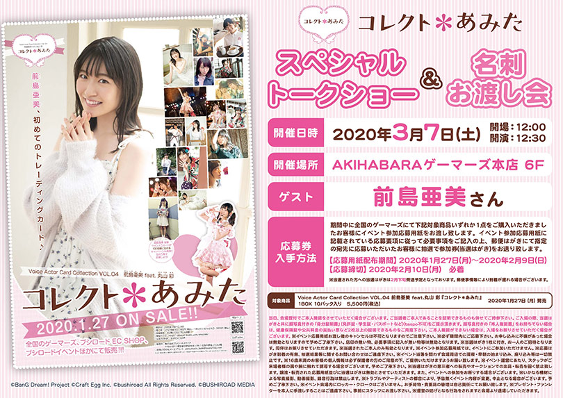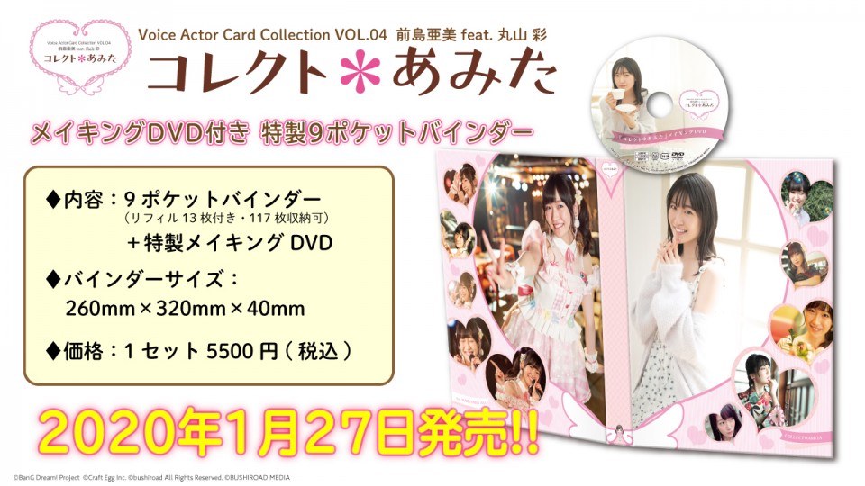 株式会社ブシロードメディアは、エイベックス・マネジメント所属声優・前島亜美さんのトレーディングカード「Voice Actor Card Collection VOL.04 前島亜美feat.丸山彩『コレクト*あみた』」を1月27日(月)に発売した。