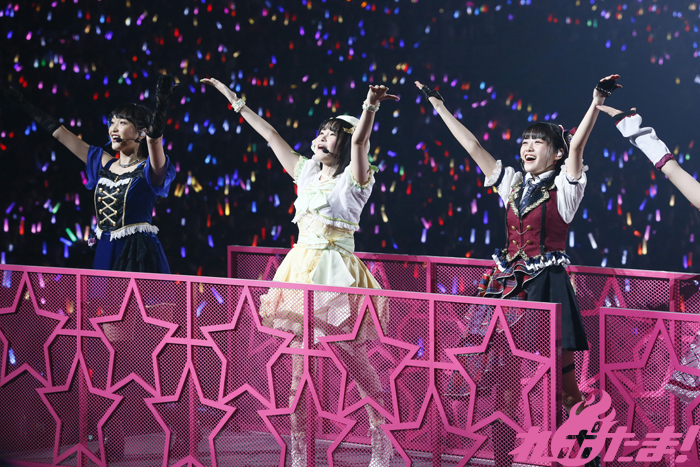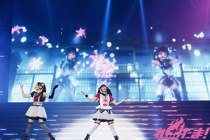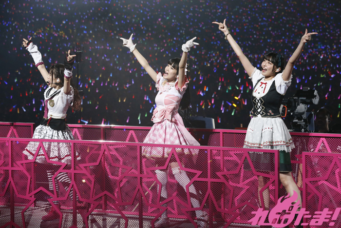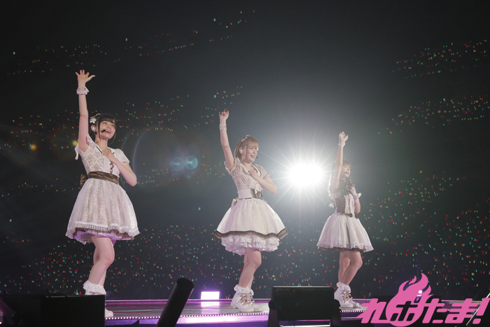 レーザービームと共にバックステージから登場した諏訪さん、小宮さん、高槻さんによるAZALEAはトロッコで会場を巡りながら「トリコリコ PLEAZE!!」、「ときめき分類学」の2曲を披露。リボンのついたステッキで可愛らしさを振りまき客席を虜にしていた。