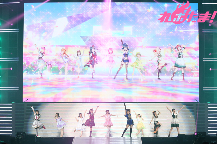 この日は「ラブライブ!」からμ’sの新田恵海さん、南條愛乃さん、内田彩さん、三森すずこさん、飯田里穂さん、Pileさん、楠田亜衣奈さん、久保ユリカさん、徳井青空さんの9人。「ラブライブ!サンシャイン!!」からはAqoursの伊波杏樹さん、逢田梨香子さん、諏訪ななかさん、小宮有紗さん、斉藤朱夏さん、小林愛香さん、高槻かなこさん、鈴木愛奈さん、降幡愛さんと、Saint Snowの田野アサミさん、佐藤日向さんの11人。「ラブライブ!虹ヶ咲学園スクールアイドル同好会」から大西亜玖璃さん、相良茉優さん、前田佳織里さん、久保田未夢さん、村上奈津実さん、楠木ともりさん、指出毬亜さん、田中ちえ美さんの8人、総勢28名が出演した。